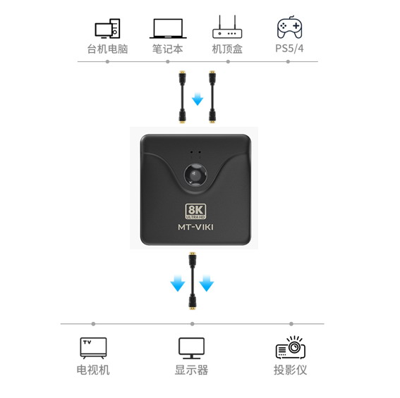 這款HDMI切換器支持同時(shí)接入2個(gè)HDMI設(shè)備,可通過按鍵選擇任意一路輸入輸出到高清電視、顯示器等顯示設(shè)備上,擁有無需供電、即插即用、一秒按鍵切換的優(yōu)勢(shì),廣泛應(yīng)用于娛樂游戲、視頻會(huì)議、辦公觀影等。