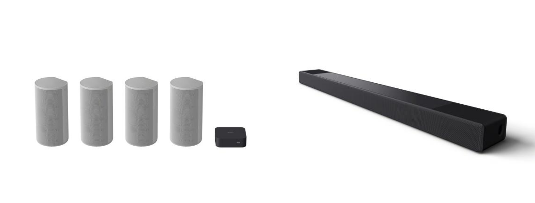搭載360SSM的索尼家庭娛樂音頻產(chǎn)品:旗艦級家庭影音系統(tǒng)HT-A9(左),旗艦級回音壁HT-A7000(右,配合使用后環(huán)繞音箱SA-RS3S或新品SA-RS5、即可享受360SSM構(gòu)建的環(huán)繞音場)
