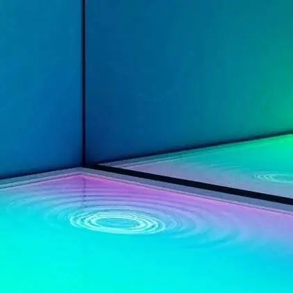 這個展覽取名叫“共振(Resonance)”,設(shè)置在一個散發(fā)著色彩柔和光芒的空間,由多個區(qū)域的裝置構(gòu)成,體驗者通過呼吸、說話和移動等日常生活行為會與裝置產(chǎn)生互動。