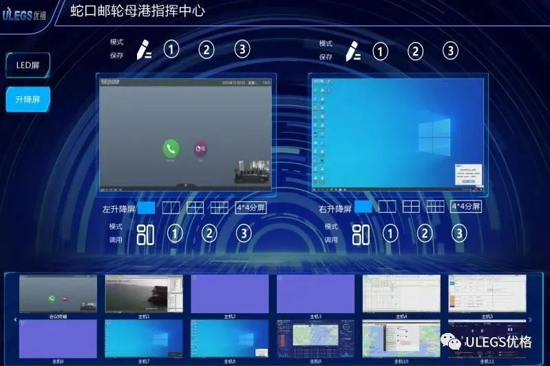 項(xiàng)目采用了ULEGS優(yōu)格DVS分布式解決方案,整個(gè)方案應(yīng)用了4K可視化分布式輸入/輸出節(jié)點(diǎn)159個(gè),可編程中央控制系統(tǒng)上1套,滿足了郵輪港口不同區(qū)域、多個(gè)會(huì)議室間信號(hào)互聯(lián)互通的需求,并實(shí)現(xiàn)了多個(gè)會(huì)議室網(wǎng)絡(luò)集中管控、大屏信號(hào)同步拼接顯示、可視化觸控管理、系統(tǒng)安全備份等多方面的需求。