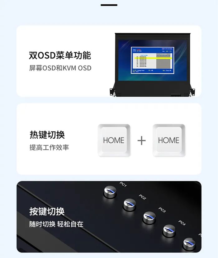 但隨著政企機(jī)房結(jié)構(gòu)調(diào)整,傳統(tǒng)KVM切換器因?yàn)楸恐夭灰装惭b和維護(hù),在散熱和分辨率等方面不如新一代組合式HDMI KVM切換器。