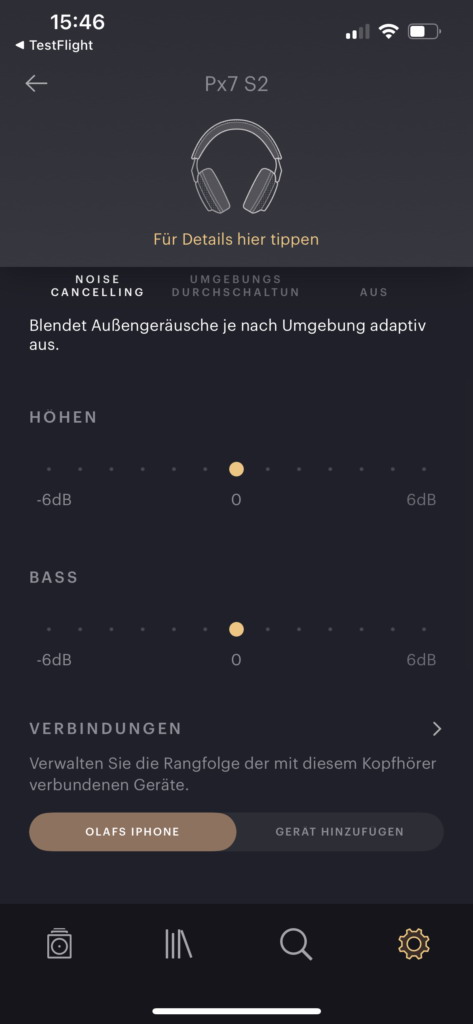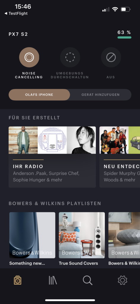 然而,就技術層面而言,Px7二代基于一個全新的無線音頻平臺,并擁有新的驅(qū)動單元,而且已經(jīng)做了全面的優(yōu)化。連應用程序也是全新的——但同時用起來也并不陌生:因為 iOS 和 Android 應用程序 Bowers & Wilkins Music 也已經(jīng)在 B&W Zeppelin 上投入使用,在最近一次更新之后,也用于控制 Px7二代。現(xiàn)在,該應用程序中還集成了一個簡單的 EQ 調(diào)節(jié)功能。