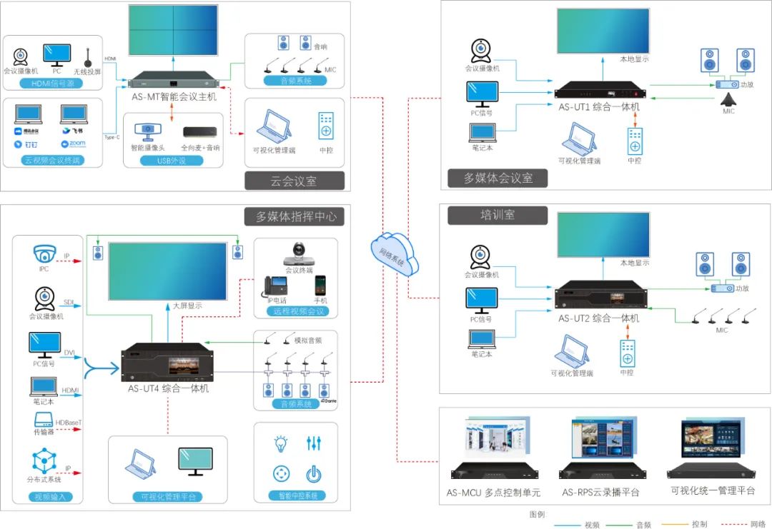 此方案適用于多媒體會議室、云會議室、決策室、會商室、培訓室、多功能廳、報告廳、發(fā)布廳等場景。