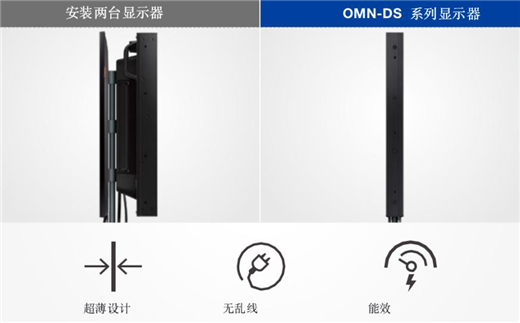 三星雙面顯示屏OMN-DS系列面向室外的屏幕具有鮮亮的視覺效果和突出的促銷定位,可有效吸引注意力,而其面向室內(nèi)的顯示屏?xí)ㄟ^顯示促銷活動、新商品,以及有關(guān)門店及其服務(wù)的其他信息,提升顧客的購物體驗。與安裝兩個單獨的顯示屏相比,這種功能二合一的顯示屏降低了設(shè)備和安裝成本,提高了零售商的信息傳遞和運營效率。本款顯示屏還提供了更多的定位選擇——既可以輕松安裝在支架上,也可懸掛在天花板上。巧妙靈活的設(shè)計創(chuàng)造出簡潔有序的外觀,隱藏式頂蓋使得線纜不再雜亂無章,超薄的外型也不會轉(zhuǎn)移人們對店內(nèi)產(chǎn)品的注意力。因此,OMN-DS 系列顯示屏釋放了空間,為零售商向潛在客戶推銷產(chǎn)品提供了更多自由度,輕松定制店面小型櫥窗展示屏。