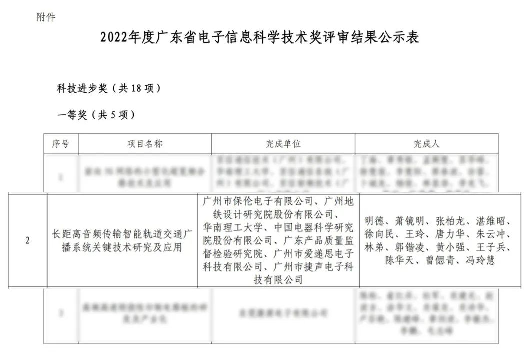 為推動廣東省科學技術進步,激勵自主創(chuàng)新、鼓勵開放合作、突出價值導向,注重成果質量和貢獻,充分調動廣大科技工作者科技創(chuàng)新的積極性和創(chuàng)造性。廣州市保倫電子有限公司主動作為、勇于創(chuàng)新,牽頭參與制定了“長距離音頻傳輸智能軌道交通廣播系統(tǒng)關鍵技術研究及應用”。
