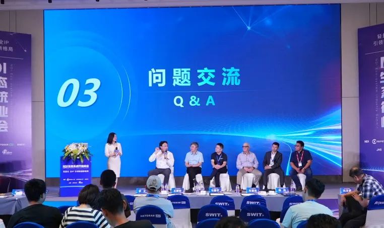 在現(xiàn)場答疑環(huán)節(jié)NDI、千視、NETGEAR、奧視威、JVC、RIEDEL的各位嘉賓紛紛上臺,與現(xiàn)場觀眾積極互動交流,為大家一一解答關于NDI在技術與應用方面的各類問題,現(xiàn)場分享了各自對于目前NDI應用的看法和經(jīng)驗。