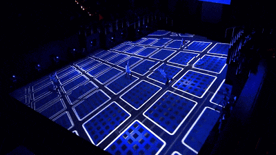 當(dāng)投影畫(huà)面應(yīng)用在地面時(shí),普通的靜態(tài)地板便會(huì)大變樣,在特定內(nèi)容的配合下煥發(fā)光彩,化身游客的舞蹈場(chǎng)。
