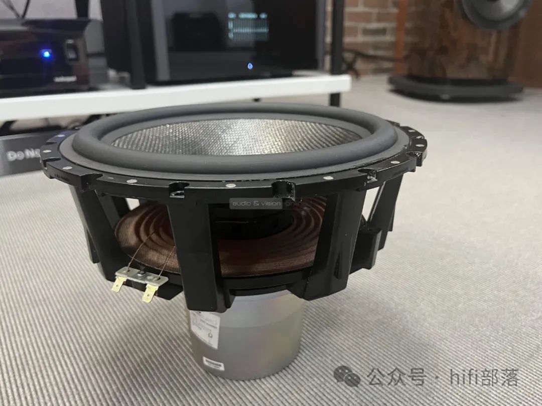 Aerofoil 低音揚聲器 低音揚聲器也是由 B&W 內(nèi)部開發(fā)的。新的錐體由兩層碳纖維皮制成,中間有一層薄薄的合成泡沫。B&W 將這種成分和技術(shù)稱為 Aerofoil。不僅圓錐體的構(gòu)成得到了更新,而且?guī)缀涡螤钜驳玫搅烁隆A錐體的厚度從中心到邊緣逐漸減小。這有助于尺寸穩(wěn)定性,同時錐體由于提供的音樂信號而前后移動。與中音驅(qū)動器一樣,兩個低音揚聲器也有一個黑色可拆卸的護罩格柵。