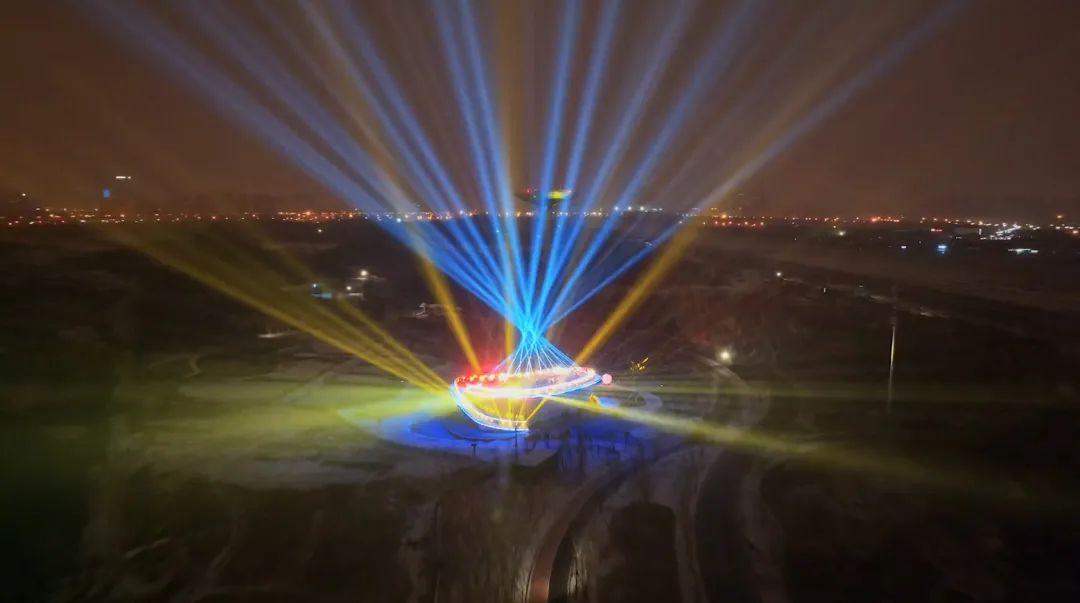 據(jù)活動(dòng)總設(shè)計(jì)盛東良介紹,本次上喜驛燈光秀緊扣“辰龍?jiān),月輝星熠”活動(dòng)主題,以光束、巨龍、明月、煮湯圓、燈會(huì)、煙火、科技等為主要元素。通過無人機(jī)、投影、燈光等多媒體手段,創(chuàng)造出一個(gè)充滿藝術(shù)感與未來科技的節(jié)日氛圍;顒(dòng)由全色光顯提供的560余臺(tái)燈光設(shè)備,其中1600W超大功率激光穿云燈在全國(guó)屬首次使用,照射高度超千米;顒(dòng)導(dǎo)演郭斌表示,今晚的光影秀致力于將傳統(tǒng)文化與現(xiàn)代科技相融合,以獨(dú)特的藝術(shù)形式傳遞祝福與溫馨,引領(lǐng)觀眾踏入一個(gè)充滿光影奇趣的仙境,沉浸在夢(mèng)幻的光影之中,感受到元宵佳節(jié)的祝福與溫馨,為城市增添節(jié)日的深厚文化底蘊(yùn)。
