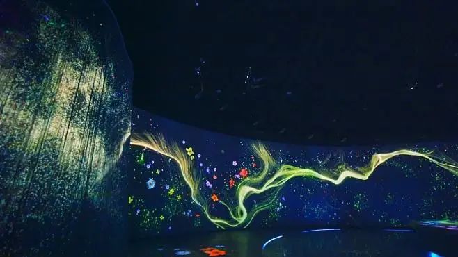在荊門博物館中,沉浸式弧幕為觀眾打造了一個(gè)超大的整幅畫面,使展示區(qū)域整體呈現(xiàn)出震撼、沉浸的效果。