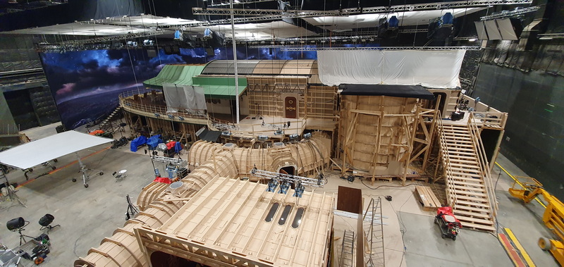 在正式拍攝過程中,制作團(tuán)隊共為這一場景創(chuàng)建了11個不同版本的天空,以及時長50秒的不同版本海洋——波濤洶涌的海面、平靜的海面和用于一天中不同時間的海洋等。當(dāng)這些畫面被投影至影棚中的11個巨大(70米×90米)環(huán)繞式LED屏?xí)r,那種天空如液體般流動的視覺表現(xiàn),帶給了現(xiàn)場人員巨大的視覺震撼。