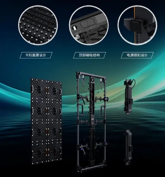 箱體連接處有磁吸結(jié)構(gòu),可輕松被激活或關(guān)閉,該結(jié)構(gòu)可實(shí)現(xiàn)更快、更精準(zhǔn)的安裝效果,大幅度減少搭建舞臺的時間成本。現(xiàn)場如需對產(chǎn)品進(jìn)行維護(hù),SW系列使用磁吸式模組,加上便捷式卡扣面罩設(shè)計,使得整體模組維護(hù)十分迅速、便捷;背部電源采用搭扣設(shè)計,可一鍵拆除,進(jìn)一步提升整體維護(hù)體驗(yàn)。