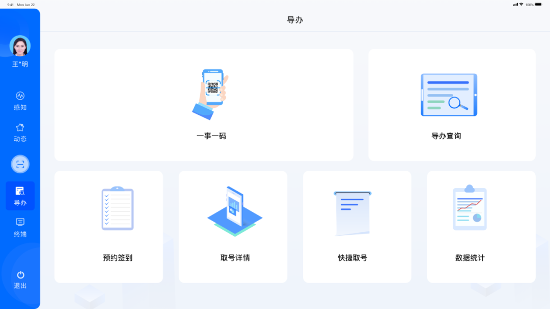 智慧政務(wù)大廳部署搭建星際互動(dòng)情形感知智能導(dǎo)辦系統(tǒng)--具備導(dǎo)辦查詢、辦件動(dòng)態(tài)、設(shè)備管控、預(yù)約簽到、快捷取號(hào)等多項(xiàng)便民引導(dǎo)服務(wù),實(shí)時(shí)獲取大廳內(nèi)業(yè)務(wù)數(shù)據(jù)、特殊人員、異常事件、辦件引導(dǎo)等各類情形,能夠有效幫助工作人員了解區(qū)域內(nèi)實(shí)時(shí)情況,及時(shí)進(jìn)行干預(yù)處理。