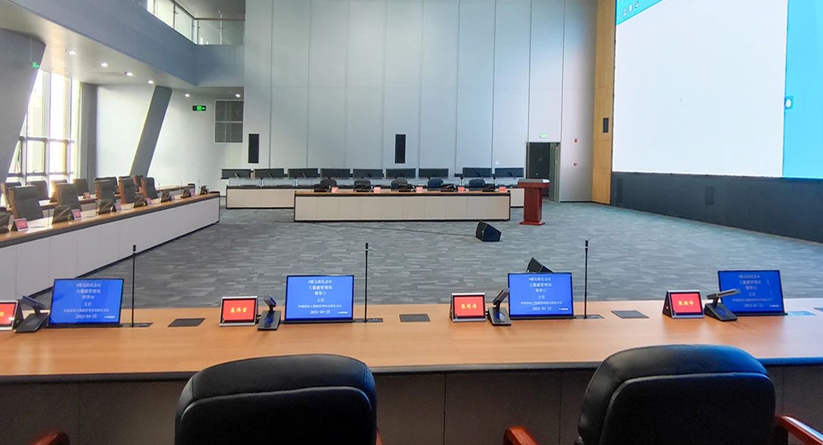 為了提高會議組織和協同辦公的效率,海南省大數據管理局還部署了東微無紙化會議系統(tǒng)和智能液晶電子桌牌。無紙化會議系統(tǒng)提供會議簽到、會議議程、投票表決、資料查閱、會議消息、一鍵同屏、會議服務等多種功能,與會人員可進行實時的會商和有效的信息溝通,充分滿足指揮調度、業(yè)務處置、高效辦公、交流展示等不同場景的應用需求。