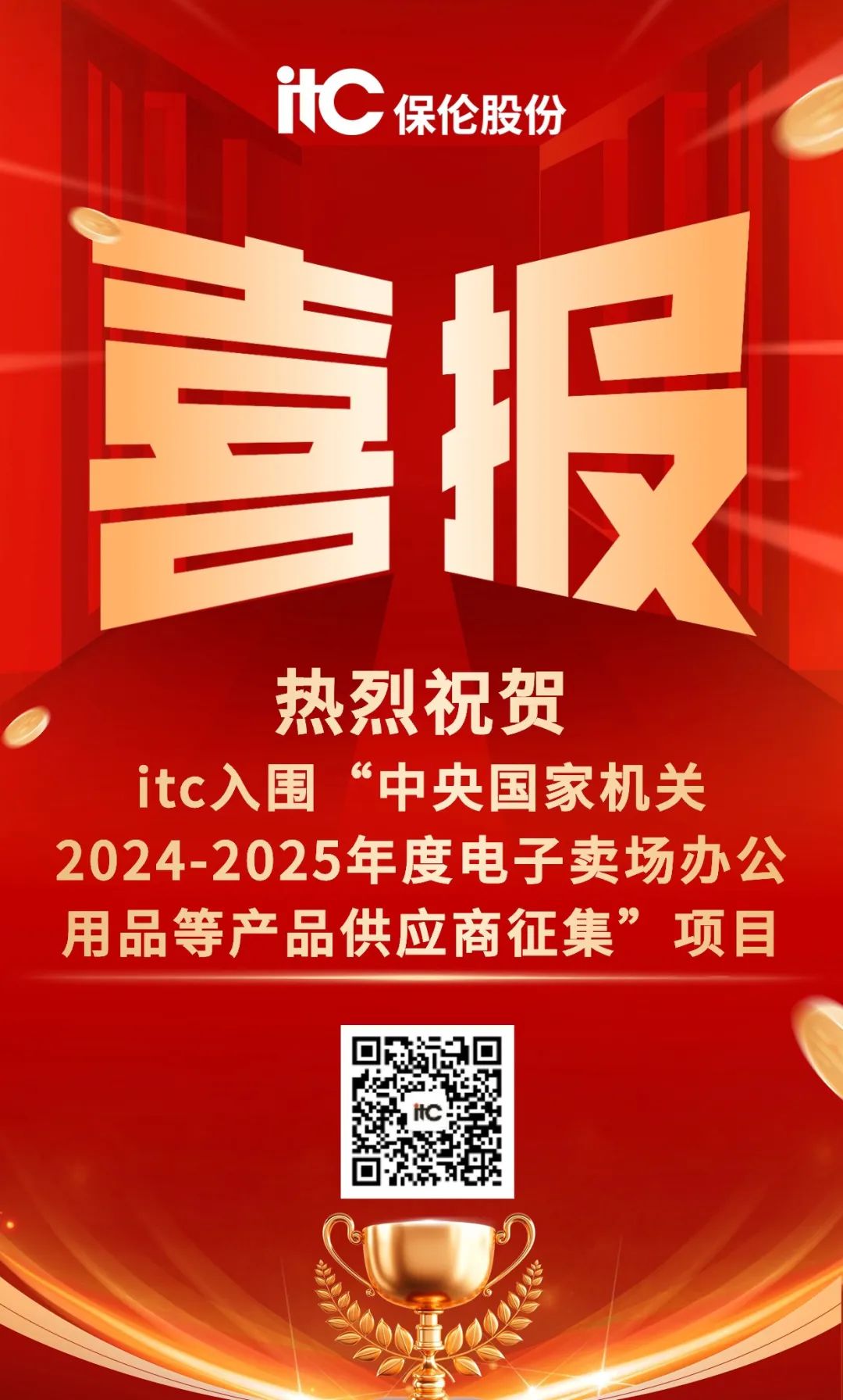 4月25日,中央政府采購網(wǎng)發(fā)布“中央國家機關(guān)2024-2025年度電子賣場辦公用品等產(chǎn)品供應(yīng)商征集中標公告”。itc保倫股份憑借優(yōu)異的產(chǎn)品品質(zhì)、過硬的技術(shù)實力和深厚的行業(yè)經(jīng)驗,在眾多廠商中脫穎而出,成功中標入圍。