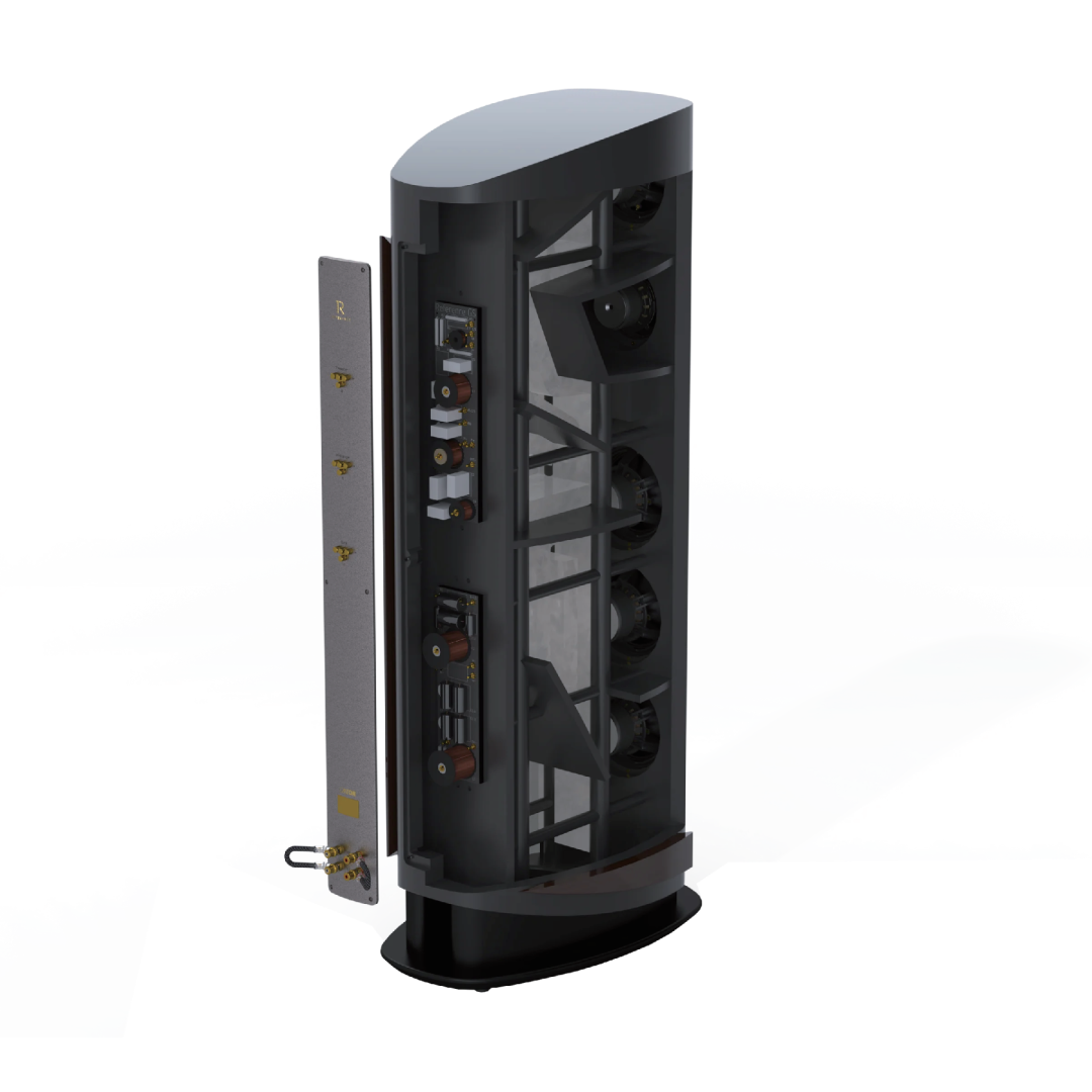 REFERENCE系列均具備音量調(diào)節(jié)功能,而唯獨(dú)Reference GS Edition更進(jìn)一步,融入了低音調(diào)節(jié)功能。用戶可通過調(diào)整橋板位置,對高音、中音及低音進(jìn)行±1.5分貝的微調(diào),為不同房間環(huán)境或個(gè)人音質(zhì)偏好提供了極為精細(xì)的定制選擇。此外,旗艦型號(hào)Reference GS Edition更采用了鍍金端子和橋接器,這些部件巧妙地安置于一整塊連續(xù)的鋁制面板上,不僅美觀大方,更有效增強(qiáng)了揚(yáng)聲器的結(jié)構(gòu)穩(wěn)定性,提升了其后部的密封性能。
