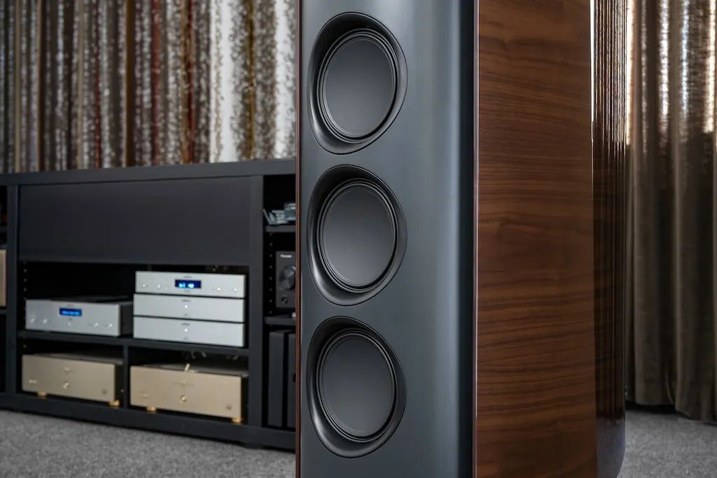 機(jī)身設(shè)計(jì)獨(dú)特,后部逐漸收窄,并以一整塊鋁板進(jìn)行封閉,鋁板垂直延伸,貫穿始終。此種構(gòu)造,經(jīng)過計(jì)算機(jī)輔助模擬與精細(xì)優(yōu)化,賦予多層多腔外殼卓越的穩(wěn)定性。此項(xiàng)工程之艱巨,可見一斑。然而,正是這樣的設(shè)計(jì),使得Reference GS Edition能夠有效控制聲音轉(zhuǎn)換過程中產(chǎn)生的巨大力量,對整個(gè)結(jié)構(gòu)的沖擊。因此,驅(qū)動(dòng)單元能夠無阻礙地釋放全部能量,避免因共振和振動(dòng)導(dǎo)致的能量損失和音質(zhì)失真。尤為值得一提的是,Reference GS Edition作為Reference系列中的獨(dú)特存在,配備了側(cè)翼設(shè)計(jì)。這些側(cè)翼采用優(yōu)雅的實(shí)木飾面,呈現(xiàn)出獨(dú)特的拱形弧形結(jié)構(gòu),堅(jiān)固而穩(wěn)重。側(cè)板與外殼緊密結(jié)合,不僅增強(qiáng)了Reference GS Edition的穩(wěn)定性和質(zhì)感,更在視覺上為其賦予了鮮明的個(gè)性。此外,側(cè)翼采用高光漆飾面,與機(jī)身的煙灰色絲綢啞光漆形成鮮明對比,既彰顯了產(chǎn)品的精湛工藝,又為用戶帶來了視覺上的享受。