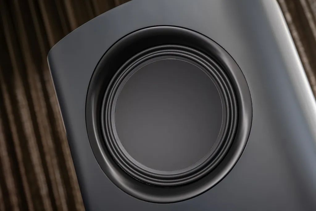 中音單元使用新型 BCT 材質(zhì)振盆。這種 "黑色陶瓷鎢 "音圈非常堅(jiān)硬,但重量很輕,因此具有極強(qiáng)的抗變形能力和極高的共振脈沖保真度。“三曲面音盆 "設(shè)計(jì)使音盆有三個(gè)不同曲率半徑的區(qū)域,這也有助于提高其穩(wěn)定性。