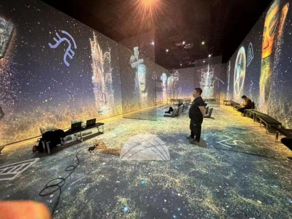 改造后的2號(hào)光影廳,以獨(dú)特的沉浸式體驗(yàn),吸引了眾多觀眾的目光。16臺(tái)投影機(jī)的無(wú)縫拼接畫面,配合光魔軟件的靈活控制,使得數(shù)字藝術(shù)與傳統(tǒng)文物展覽的結(jié)合達(dá)到了不一樣的高度。觀眾在光影廳中仿佛穿梭于歷史與現(xiàn)實(shí)之間,體驗(yàn)到了運(yùn)河文化的獨(dú)特魅力。