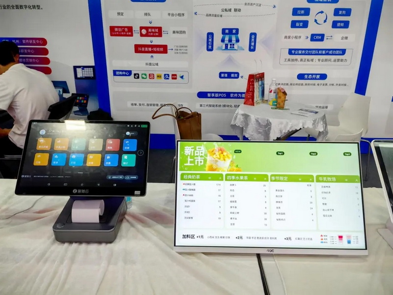 在吧臺應(yīng)用中,以23.8"超薄超高亮度的智慧電子餐牌為核心,其具備高亮展示、個性設(shè)置、靈活折疊、安卓系統(tǒng)等優(yōu)異性能,可對接店面POS系統(tǒng)、叫號系統(tǒng),根據(jù)后臺銷量進行熱度排名,以及后臺設(shè)置庫存標注售罄商品和其它相關(guān)的菜單提示等。同時,以多元化、新穎化、趣味化的展現(xiàn)形式聚焦到店消費者的目光,進一步提高門店的轉(zhuǎn)化率及營業(yè)額。