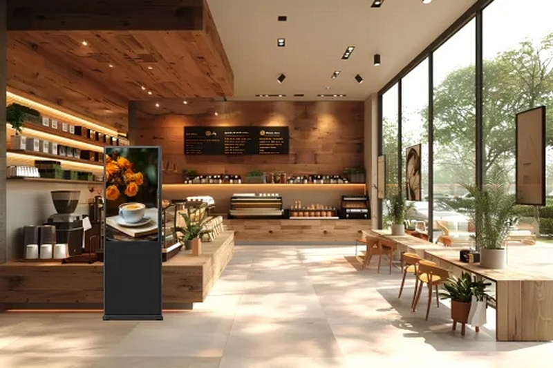 餐茶飲門店中,顯示屏可躍升為視覺焦點,不僅有助于展現(xiàn)新品、促銷等信息,傳遞品牌文化,還能增強顧客互動體驗。通過沉穩(wěn)優(yōu)雅、機身纖薄的極彩系列S3立式廣告機,不僅能夠提升大氣觀感,還能實時從云端便捷推送如品牌背景、產(chǎn)品促銷、新品上市等信息,實現(xiàn)門店信息智慧化、高清化、高亮化展示,進一步聚焦消費者目光。同時,通過對各類信息的即時性展示,也能有效解決更新不及時、物料損耗大、持續(xù)性低、宣傳成本高等問題。