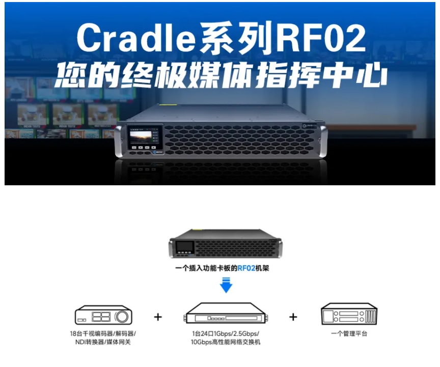 北京時間9月6日,千視重磅發(fā)布全新Cradle系列RF02!RF02 作為千視Cradle系列在2024年的巔峰之作,旨在通過一個2RU結(jié)構(gòu)實(shí)現(xiàn)模塊的靈活性、超凡的性能和極致的空間利用效率,成為您的終極媒體指揮中心,并徹底改變您的 AV over IP 工作流。通過搭配多種可選配的媒體業(yè)務(wù)卡,用戶可構(gòu)建獨(dú)有的專業(yè)媒體工作站。在實(shí)際應(yīng)用場景中,RF02 專為高密度、多用途的工作用途量身定制。憑借KiloLink Server Pro的后臺支持,RF02極大地提升了設(shè)備的集中管理和監(jiān)控的能力,讓用戶能夠游刃有余地駕馭復(fù)雜的音視頻制作項(xiàng)目,邁向?qū)I(yè)制作的新高度!