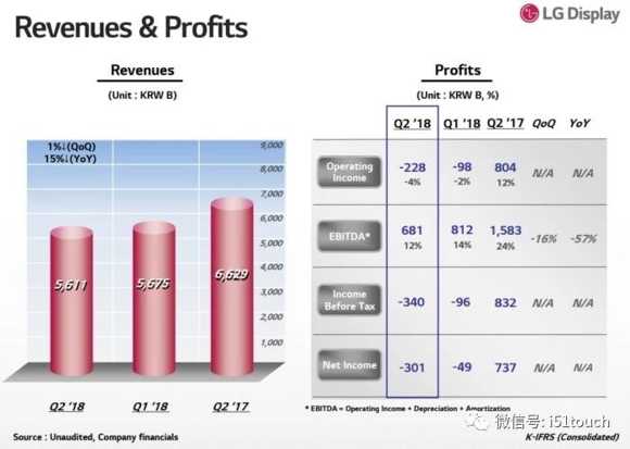 韓聯(lián)社報導,LGD第二季凈損3,005億韓圜,迥異于去年同期凈賺7,360億韓圜。當季營收5.6兆韓圜,較去年同期萎縮15.4%。