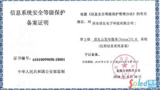 諾瓦科技自主研發(fā)的Vnnox云發(fā)布系統(tǒng)于近日成功通過公安部“信息系統(tǒng)安全等級保護(hù)”三級認(rèn)證,獲得了由公安部核準(zhǔn)頒發(fā)的《信息系統(tǒng)安全等級保護(hù)備案證明》,成為LED行業(yè)極少數(shù)獲此資質(zhì)的企業(yè)之一。