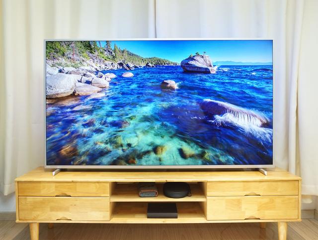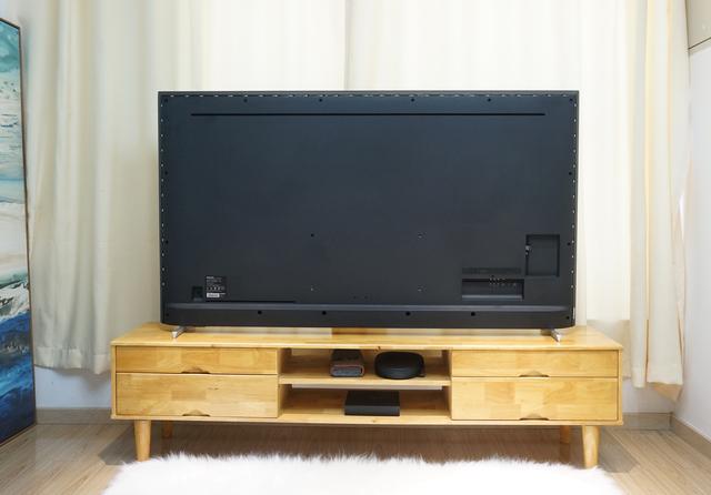箱子拿走,放上電視,一米八的電視桌終于一展所長,70寸的電視幾乎占滿,而遠(yuǎn)遠(yuǎn)看去,金屬腳架與超窄金屬邊框的點綴,也讓這一眼望去全是屏幕的大電視多了些質(zhì)感。