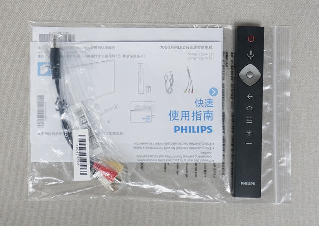 箱子內(nèi)除了電視本體和已經(jīng)安裝上的兩個腳架、電源線外,還有不用讀系列、一個帶語音功能的遙控器、一根AV OUT連接線和一組電池(已經(jīng)裝入遙控內(nèi))。