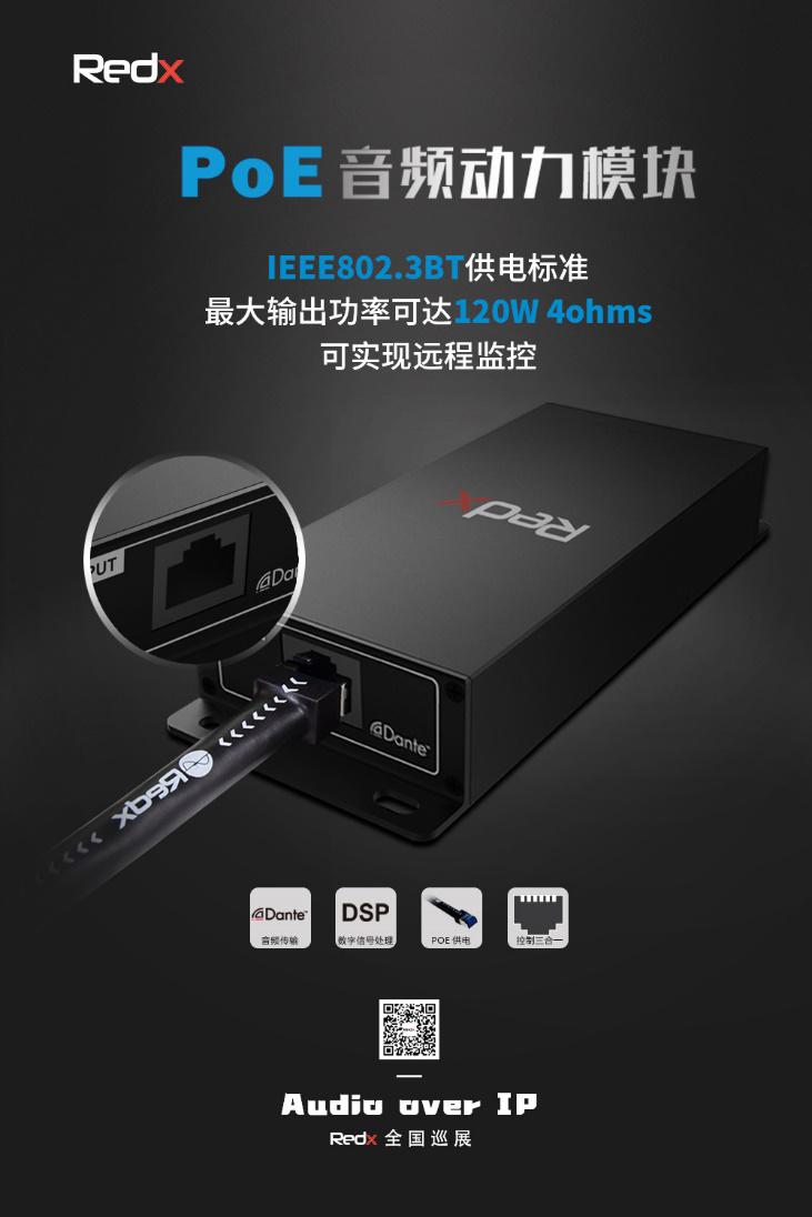 作為國(guó)內(nèi)音頻行業(yè)的創(chuàng)新領(lǐng)導(dǎo)品牌之一,Redx一直專(zhuān)注于音頻IP化系列產(chǎn)品的創(chuàng)新與研發(fā),致力于為市場(chǎng)提供全網(wǎng)絡(luò)化音頻解決方案和技術(shù)支持服務(wù)。在本次的全國(guó)巡展中,Redx在現(xiàn)場(chǎng)展示了數(shù)字音頻處理器、SSA數(shù)字功率放大器、PoE動(dòng)力音頻模塊、PoE音箱以及PoE網(wǎng)絡(luò)化音頻解決方案。
