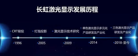 1996年,長虹CTR背投問世,掀起大屏電視的熱潮,于此,長虹一直投身于投影顯示的研究。2008年,率先家電品牌開啟激光顯示技術的研究及儲備。2014年,第一代激光影院率先問世,開啟了長虹激光自主研發(fā)、制造、自主創(chuàng)新突破之路。2016年5月,長虹激光技術團隊攻堅破難,率先實現(xiàn)激光光機自主設計與生產(chǎn),同年12月領先行業(yè)打破鏡頭及菲涅爾膜片國際壟斷,實現(xiàn)自主化。2017年,產(chǎn)能再升級,打造年產(chǎn)能高達10萬臺的6000平米廠房,進入激光產(chǎn)業(yè)第一梯隊。