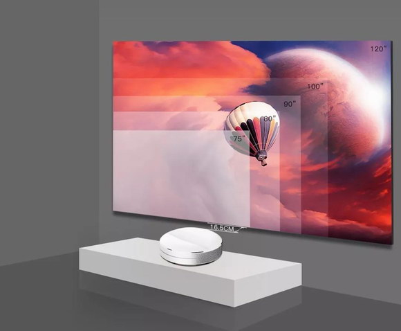 不同于傳統(tǒng)投影需要一個較遠的距離才能投射大畫面,C7UG采用超短焦技術,投射比例達到0.233:1,只需要放在離墻壁16.5cm的地方,即可完整清晰地投射出百吋大畫面。在擁有更好的視界的同時占用更小的空間,將空間利用率達到最大化。