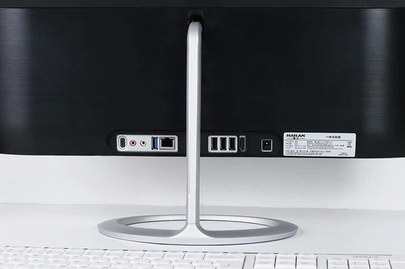 而如此驚艷的觀感可不止是海蘭Q40的正面,無(wú)論從側(cè)面還是背面看都同樣令人驚訝,設(shè)計(jì)師怎么能將一體機(jī)做得如此簡(jiǎn)約精致呢?甚至從背面看也未必能一眼就看出是一體機(jī),而整機(jī)在黑色面板為主的設(shè)計(jì)下,還獨(dú)特的配以一個(gè)專利設(shè)計(jì)的銀色底座。無(wú)論從任何角度來(lái)看這個(gè)底座,都令人有點(diǎn)難以置信,如此極簡(jiǎn)的線條,居然能支撐起一個(gè)屏幕,而且是一體機(jī)的屏幕,后面還有主機(jī)配件哦。