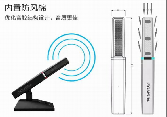 在外觀設(shè)計(jì)上這款產(chǎn)品采用了柱形咪桿搭配方形底座,整體效果彰顯著大氣、硬朗的風(fēng)格。方柱形的咪桿結(jié)構(gòu),為核心部件的選型及內(nèi)部聲腔的設(shè)計(jì)上提供了充分的條件。