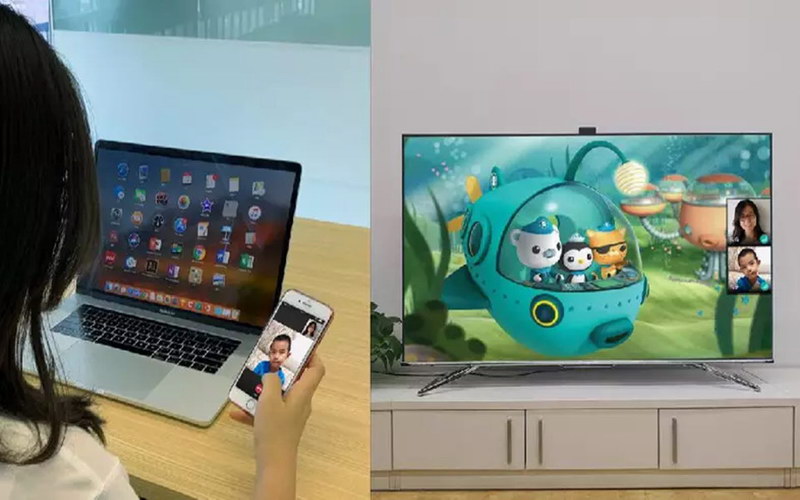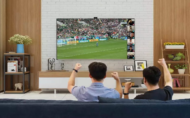 支持大屏和手機(jī)同時在線的六路視頻暢聊及共享放映廳,可以讓親友團(tuán)一起追劇、一切聊球、一起暢聊。個人用戶則可以創(chuàng)建共享放映廳,親友團(tuán)可共享影視內(nèi)容,在海信云平臺上通過認(rèn)證的大V也可以創(chuàng)建放映廳和粉絲共享精彩內(nèi)容!按笃僚笥讶Α鄙鷳B(tài)躍然屏上。