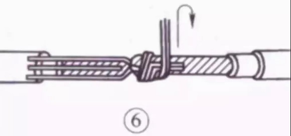 將每個(gè)線頭在另一芯線上緊貼并繞6圈,用鋼絲鉗切去余下的芯線,并鉗平芯線末端。