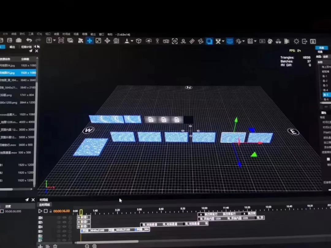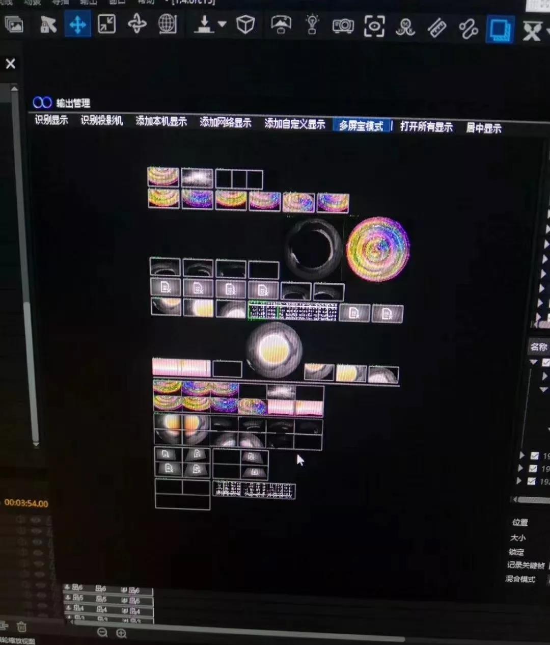 頂幕大角度斜投是本次調(diào)試的難點(diǎn)之一,hecoos在軟件中模擬現(xiàn)場(chǎng)各個(gè)投影機(jī)的安裝位置和安裝角度,預(yù)先處理融合帶,避免了傳統(tǒng)融合方式的先將梯形畫(huà)面矯正為矩形再進(jìn)行融合,最大限度減少亮度損耗,提升光路有效利用率。