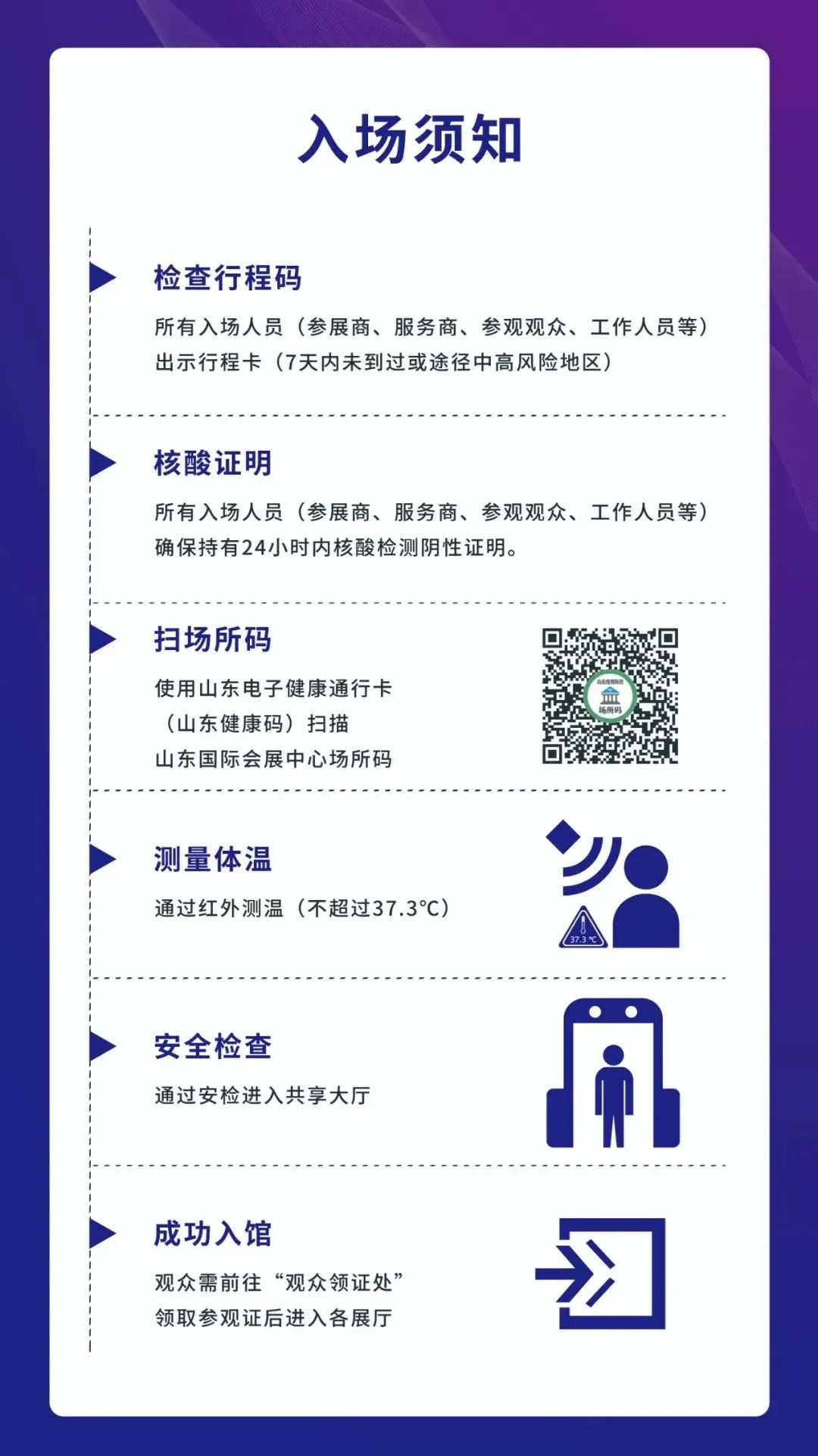 # 每次進入會展中心園區(qū)/展館均須持有24小時內(nèi)核酸檢測陰性證明(自報告出具時間開始計算,電子或紙質(zhì)報告均可),全程正確佩戴口罩,保持安全社交距離。